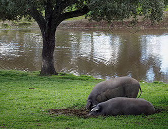- El peso de la entrada en la Montanera debe estar comprendido entre los 85-100 kilogramos para que al final de la misma oscile entre 170-180 kilos. El significativo aumento de peso en tan corto espacio de tiempo es lo que va a aportar al cerdo la infiltración de grasa tan característica.